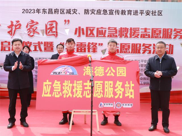 活动伊始,胡瑞恒向本次活动致辞,他表示本次“青护家园”小区应急救援志愿服务项目的成立,填补了东昌府区各小区在应急救援领域工作上的空缺,不仅加强了和谐、平安社区的建设,还为创建全国文明城市,贡献一份青年力量。胡瑞恒、张晓辉为“青护家园”海德公园小区应急救援志愿服务站揭牌。齐亚芳为“青护家园”海德公园小区应急救援青年突击队授旗。聊城虎贲救援队队长武博、物业公司代表徐馨分别进行发言。参会领导共同启动“青护家园”小区应急救援志愿服务项目。