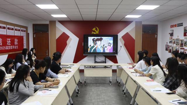 会议伊始,赵艳敏强调,诚信是立身之本,还款信用不仅关乎个人信誉,更与未来的发展紧密相连。参会人员共同观看了以“贷款助学,信用助人”为主题的诚信还款宣传片,该宣传片通过生动的故事、详实的数据和专业的解读,为毕业生们全面展现了国家助学贷款政策的意义与诚信还款的重要性,让毕业生们更加深刻地认识到按时还款的责任,也感受到学院对他们的关怀与期望。