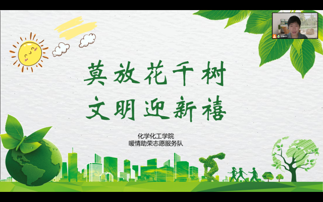 活动伊始,志愿者们查阅烟花爆竹的相关资料后进行实地考察,初步了解当地烟花爆竹燃放情况。随后,志愿者们于线上开展以“莫放花千树,文明迎新禧”为主题的宣讲,向居民科普烟花爆竹的主要成分以及燃放烟花爆竹的危害,并呼吁居民们减少烟花爆竹燃放,共创绿色家园。宣讲结束后,志愿者们走进社区,向各年龄段居民详细介绍烟花爆竹,科普燃放烟花爆竹对环境的危害,进一步劝告居民减少燃放烟花爆竹,保护绿色环境。活动最后,志愿者们与家人共同制作仿真鞭炮摆件,鼓励家人在体会年味的同时,践行绿色环保理念。经过本次宣讲,居民们认识到燃放烟花爆竹对环境的危害,纷纷表示要减少烟花爆竹的燃放,坚持环境保护,为美丽中国建设贡献自己的力量。