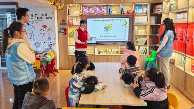 活动伊始,志愿者以生活中的化学小知识为切入点,用通俗易懂的语言向小朋友们讲解了天然气燃烧、洗洁精去污、面团发酵等常见的生活现象背后所蕴藏的化学原理,并通过提问抢答的方式加深了小朋友们对相关化学知识的了解与记忆。随后,志愿者带领小朋友们观看滴胶的制作视频,向小朋友们介绍了实验的材料、过程及原理,着重强调制作过程中滴胶的混合比例、干花放置位置、材料正确使用方法等注意事项,鼓励他们积极参与制作。在志愿者的悉心指导下,小朋友们发挥动手能力,大胆操作,顺利完成了滴胶的制作,现场气氛活跃而温馨。活动最后,志愿者为小朋友们分发提前准备好的滴胶成品,小朋友们纷纷表示,通过此次活动自己学会了滴胶的制作方法,感受到了化学实验的神奇之处,在今后将更加关注生活中所蕴藏的化学知识,让所学知识进一步应用于实际生活。